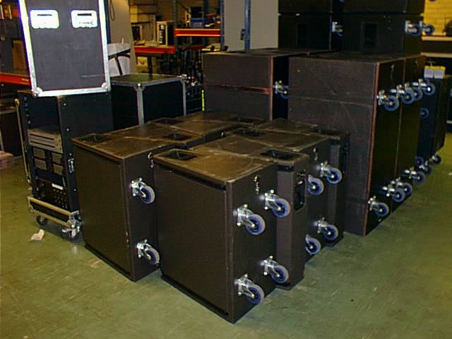 PR-1: (2-vägs, 2mon. system) 16 kanals Mackie mixer, Yamaha Rev-500, 2xKlark TeknikEQ 2x14, CD/Kassett, Lab-steg, BSS-delning. PR-2: (1-vägs, 2mon. system) 14-kanals Allen&Heath GL2 mixer, Yamaha Rev-500, PA-EQXTA 2x31, Mon. EQ RANE 2x14, CD/Kassett, Lab-steg.